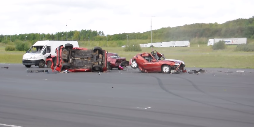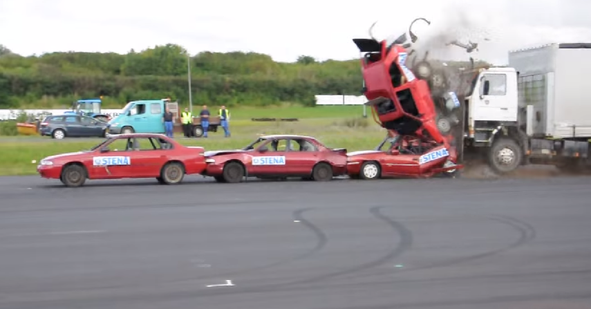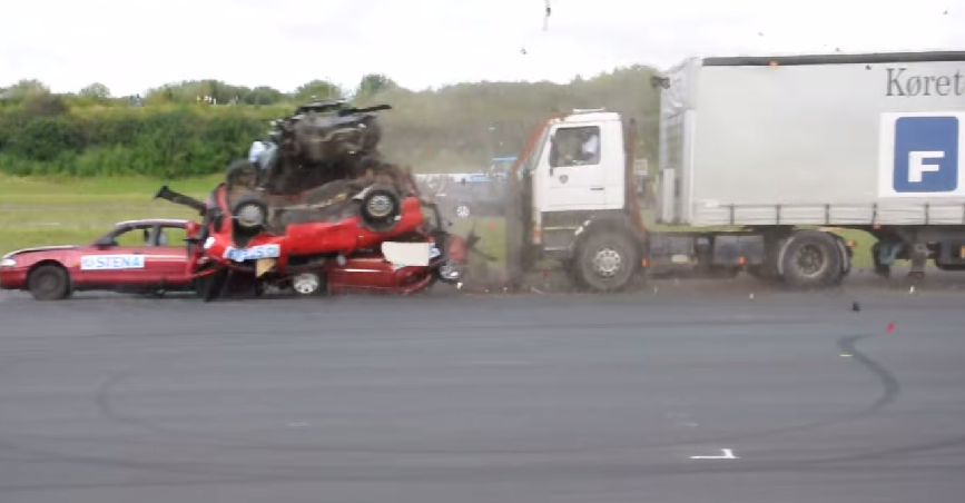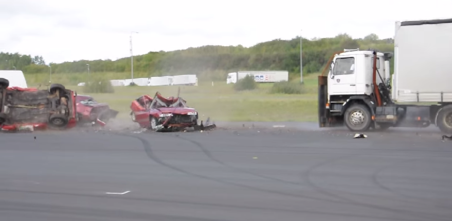 คลิปของต่างประเทศที่ทำการทดสอบการชนของรถสิบล้อกับรถยนต์