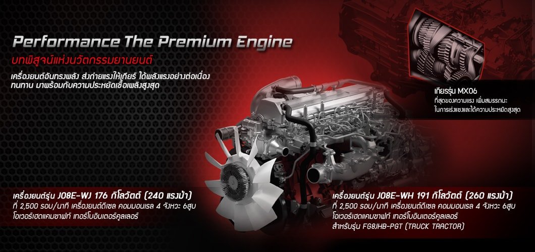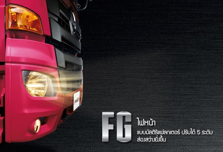 “ฮีโน่” กับรถบรรทุกสายพันธ์แกร่ง HINO รุ่น FG8JF1D ด้วยรูปโฉมการออกแบบที่สวยงามทันสมัยบ่งบอกได้ถึงความเท่และดุดัน มีไฟหน้าแบบมัลติรีแฟลกเตอร์สามารถปรับได้ถึง 5 ระดับ สามารถติดตั้งบันไดเสริมที่วงล้อเพื่อช่วยเพิ่มความสะดวกและปลอดภัยในการขึ้นและลง นอกจากนั้นยังมีการติดตั้งระบบหัวเก๋งแบบกึ่งลอยตัวช่วยลดการสั่นสะเทือนภายในของห้องโดยสาร เพื่อความนุ่มนวลนั่งสบายตลอดการเดินทาง