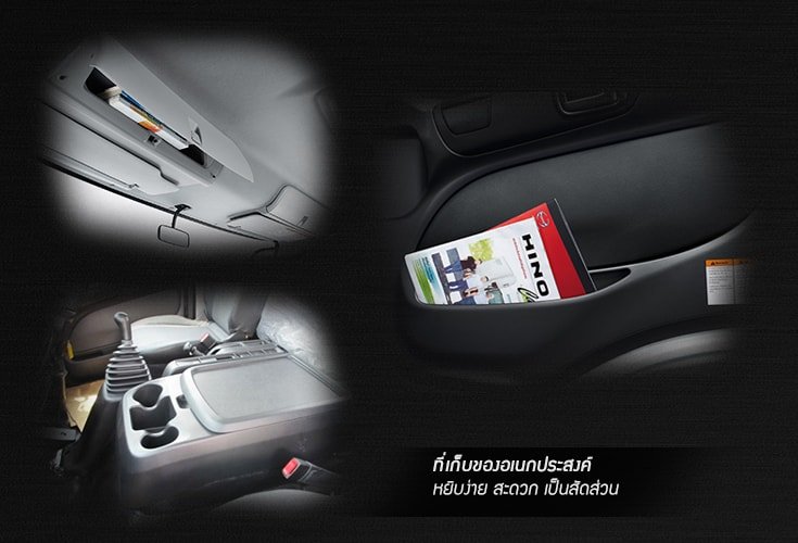 ส่วนภายในของห้องโดยสาร HINO รุ่น FG8JF1D นั้นกว้างขวางนั่งสบาย ขับง่ายด้วยพวงมาลัยปรับระดับ4ทิศทาง พร้อมปรับปรุงวิสัยทัศน์ในการมองเห็นท้องถนนให้ง่ายต่อการขับขี่มากยิ่งขึ้น และเพิ่มความปลอดภัยมากยิ่งขึ้น ด้วยหัวคันเกียออกแบบใหม่ป้องกันการเกิด Over Run เพิ่มความสะดวกสบายอีกขั้นกับช่องเก็บของอเนกประสงค์ที่หยิบง่ายและเป็นสัดส่วน
