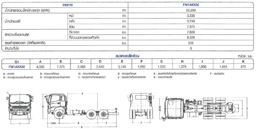 รายละเอียดรถบรรทุกรุ่น : FM1AKKM
