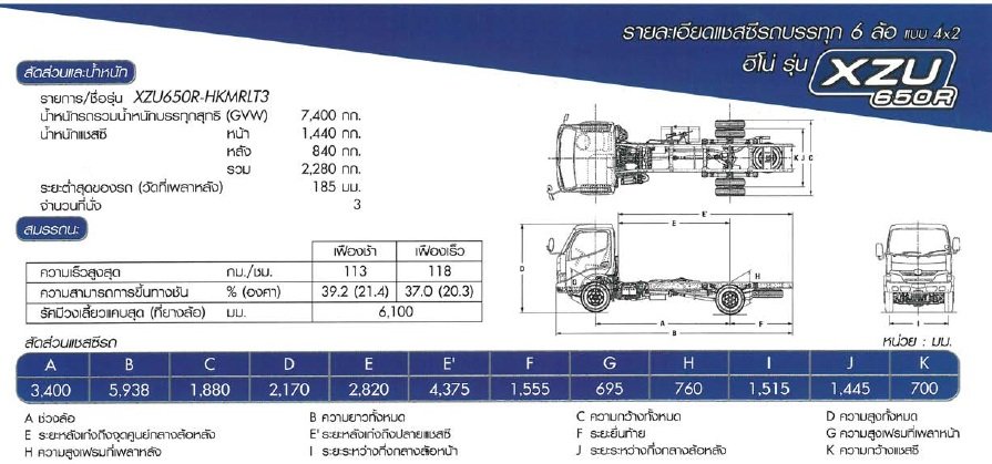 รายละเอียดรถบรรทุกรุ่น: XZU650R