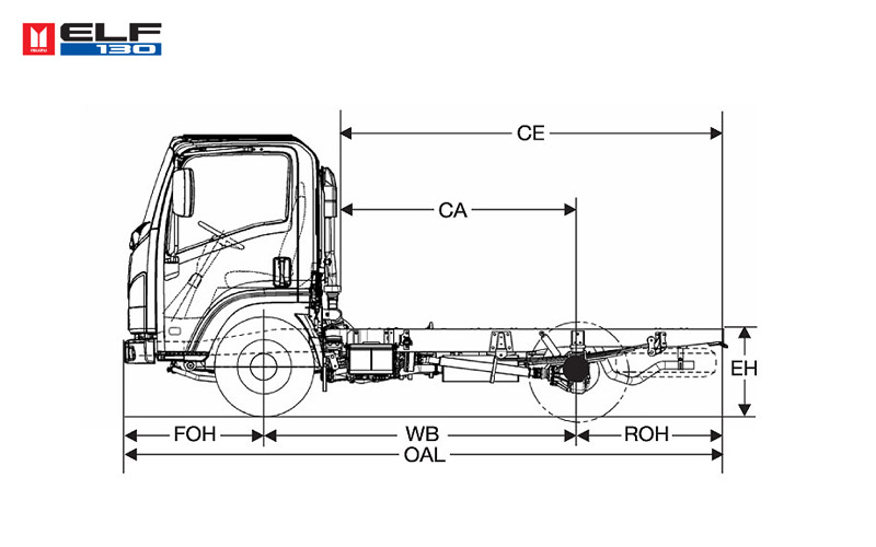 | รุ่น/รหัส | OAL | WB | FOH | ROH | CE | CA | OW | AW | BW | CW | OH ประมาณ |