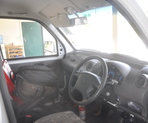 รูปแบบภายใน มี 2 ที่นั่ง ค่อนข่างแคบ ถ้าหากนั่ง 2 คน จะไม่เหลือพื้นที่ให้วางของได้ แผงคอนโซลดูเรียบสวยงามใช้ได้ เอาเท่าที่จำเป็นก็พอ มีเพียง เครื่องเสียงที่รองรับ USB และ SD Card ปุ่มเครื่องปรับอากาศ ปุ่มไฟตัดหมอกหน้า-หลัง แถบไฟบอกสถานะก๊าซ ที่จุดบุหรี่ แถมด้วยถังดับเพลิงมาให้ด้วย ซึ่งติดตั้งอยู่ตรงช่องวางแก้ว หันมามองบนแผงหน้าปัด ดูราบเรียบ ไม่ต้องมีลูกเล่นอะไรมากมาย เพียงแค่ มาตรวัดความเร็วทางด้านซ้าย และแถบวัดรอบเครื่องยนต์ทางด้านขวา สำหรับช่องบอกข้อมูล บอกดิจิตัล จะบอกระดับน้ำมัน อุณหภูมิเครื่อง นาฬิกา และ Trip และพวงมาลัยขนาด 4 ก้านที่ดูเรียบๆ มีปุ่มแตร อยู่ 2 ฝั่งนิ้วโป้ง และปุ่มสวิทช์ไฟฉุกเฉินฝังอยู่ตรงคอพวงมาลัย โดยพวงมาลัยนี้ไม่สามารถปรับระดับได้ สำหรับเบาะนั่งโดยสาร สามารถปรับเลื่อนระยะทางหน้า-หลัง ได้ แต่ไม่สามารถ ปรับเอนเบาะ ได้ ทำให้เบาะนั่งจึงต้องตั้งชันพอสมควร สำหรับตัวผมเองที่มีส่วนสูง 174cm ในตำแหน่งผู้ขับยังไม่ถือว่า อึดอัด เข่าติด ทำให้ขับได้ลำบากมากนัก ในจังหวะที่ยกเท้าซ้ายออกจากแป้นคลัช ยังพอมีพื้นที่ให้เหยียดเท้าซ้ายออกไปได้ แต่หากผู้ขับที่มีส่วนสูง ในระดับ 180cm ขึ้นมา อาจมีเมื่อยเข่ากันได้บ้าง
