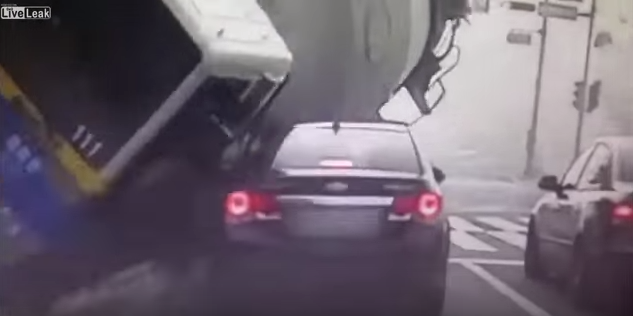 เรียกได้ว่าซวยสุดๆสำหรับรถเก๋งคันหนึ่งที่อยู่ดีๆก็ชะตาขาด เหตุเกิดที่ต่างประเทศ ซึ่งในตอนแรกรถเก๋งได้จอดติดไฟแดงอยู่ เหตุการณ์เหมือนจะไม่มีอะไร จู่ขณะนั้นเองได้มีรถบรรทุกคันหนึ่งที่วิ่งด้วยความเร็ว ขับผ่าไฟแดงมา เมื่อผ่านไปจนถึงกลางแยก ได้เกิดเหตุไม่คาดคิด รถบรรทุกคันดังกล่าวได้หักหลบรถมอไซค์ที่กำลังจะขับผ่าน ซึ่งด้วยความเร็วและความหนักของรถบรรทุก จึงทำให้รถเิดเสียหลักไปทับเก๋งผู้เคราะห์ร้ายจนเละ เสียชีวิตทันทีถึง3คน ไปดูภาพเหตุการณ์ระทึกในคลิปกันเลยดีกว่า