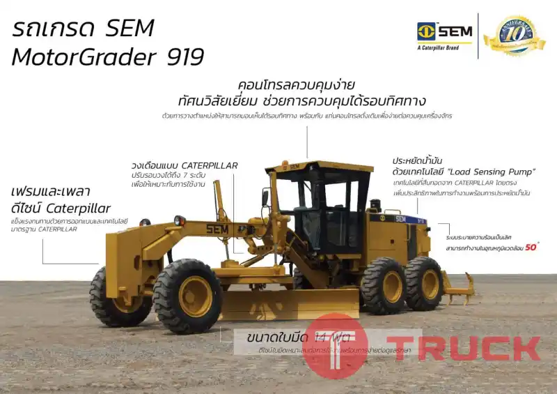 รถเกรด SEM 919 เทคโนโลยีจาก Caterpillar 190 แรงม้า 2,200 รอบ