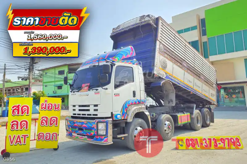 สิบสองล้อดั้มพ์ ISUZU FYH 360 แรง ปี 2555 (0856)- แม่ยาว 7.0 กว้าง 2.50 สูง 2.20- เครื่องเดิม เกียร์เดิม ไม่มีชนหนัก- รถโรงสีมือเดียวป้ายแดงเข้าศูนย์ตลอด