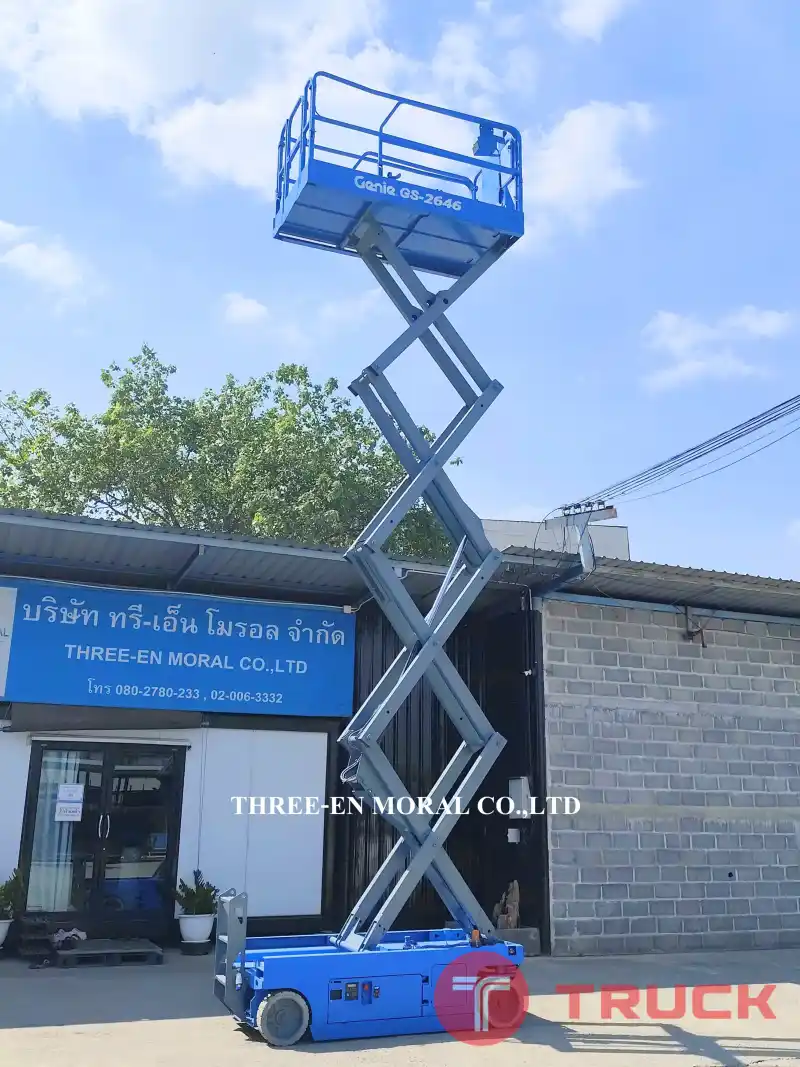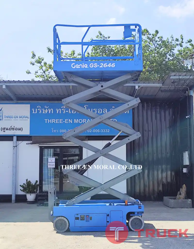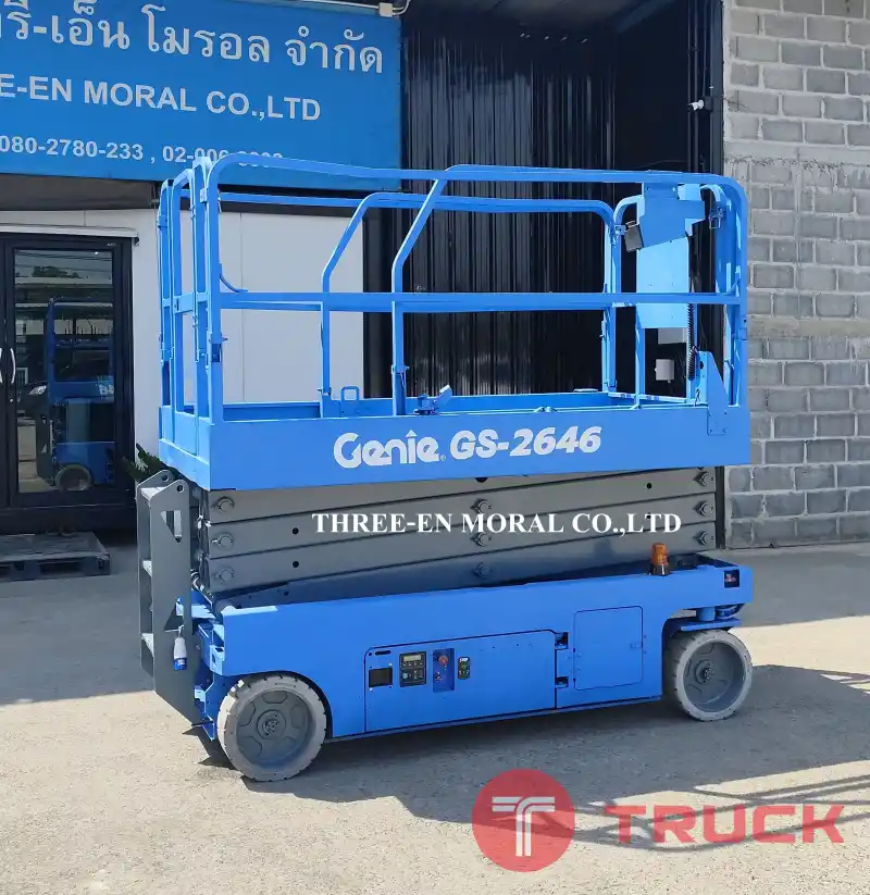 รถกระเช้า Scissor Lift Genie GS-2646 รุ่นที่นิยมที่สุดในตลาดรถกระเช้า ใช้งานได้อเนกประสงค์ มีความปลอดภัยสูง อะไหล่หาง่าย มาตรฐานอเมริกา ทดสอบการใช้งานให้ดูทุกระบบ