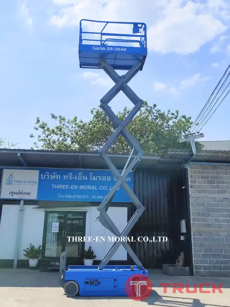 รถกระเช้า Scissor Lift Genie GS-2646 รุ่นที่นิยมที่สุดในตลาดรถกระเช้า ใช้งานได้อเนกประสงค์ มีความปลอดภัยสูง อะไหล่หาง่าย มาตรฐานอเมริกา ทดสอบการใช้งานให้ดูทุกระบบ