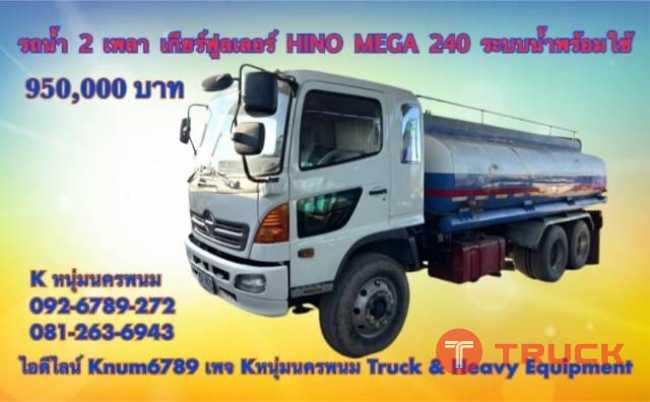 รถน้ำ 2 เพลา เกียร์ฟูลเลอร์ 950,000 บาท HINO MEGA 240 บรรจุน้ำ 18,000 ลิตร ระบบน้ำพร้อมใช้ หัวบาง ยางดี คัซซีสวย เครื่อง K13D เอกสารพร้อมโอน