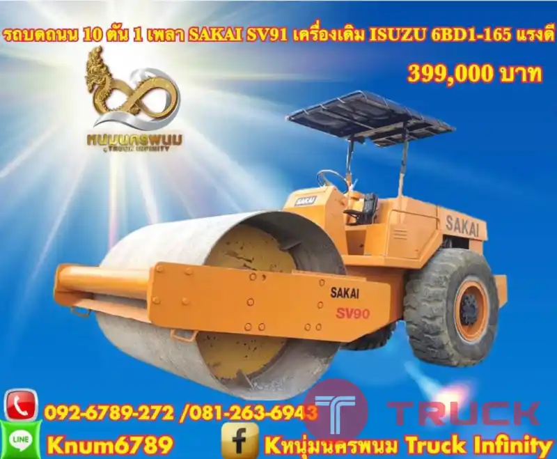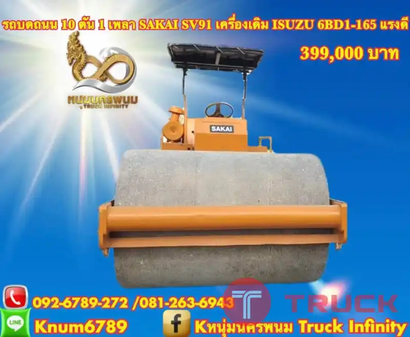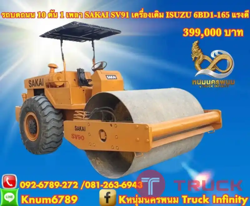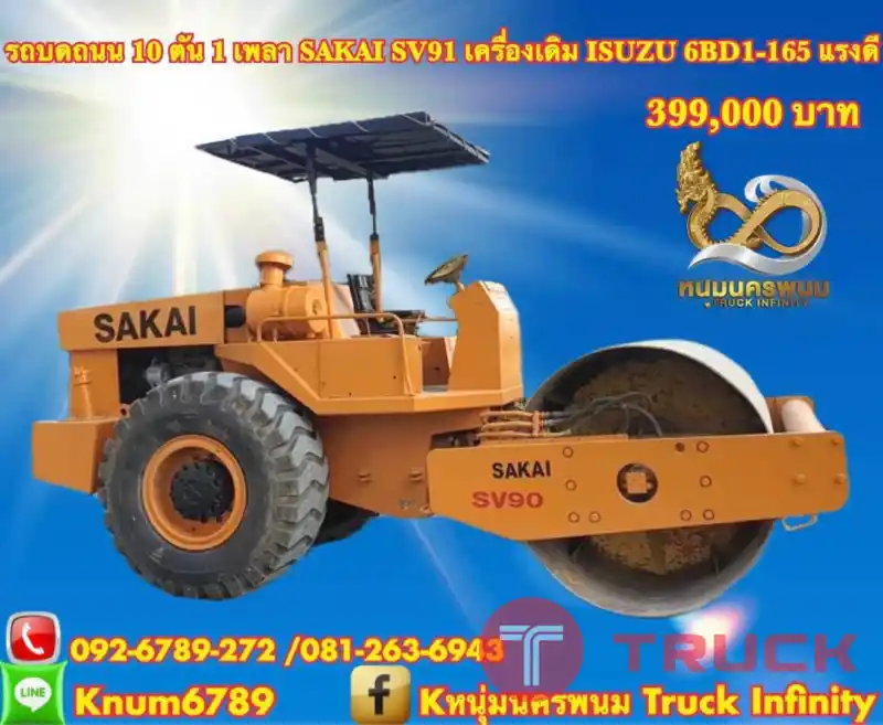 รถบดถนน 10 ตัน 1 เพลา 399,000 บาท SAKAI SV91 เครื่องเดิม ISUZU 6BD1-165 แรงดี ระบบสั่น หยาบ-ละเอียด เกียร์แรง